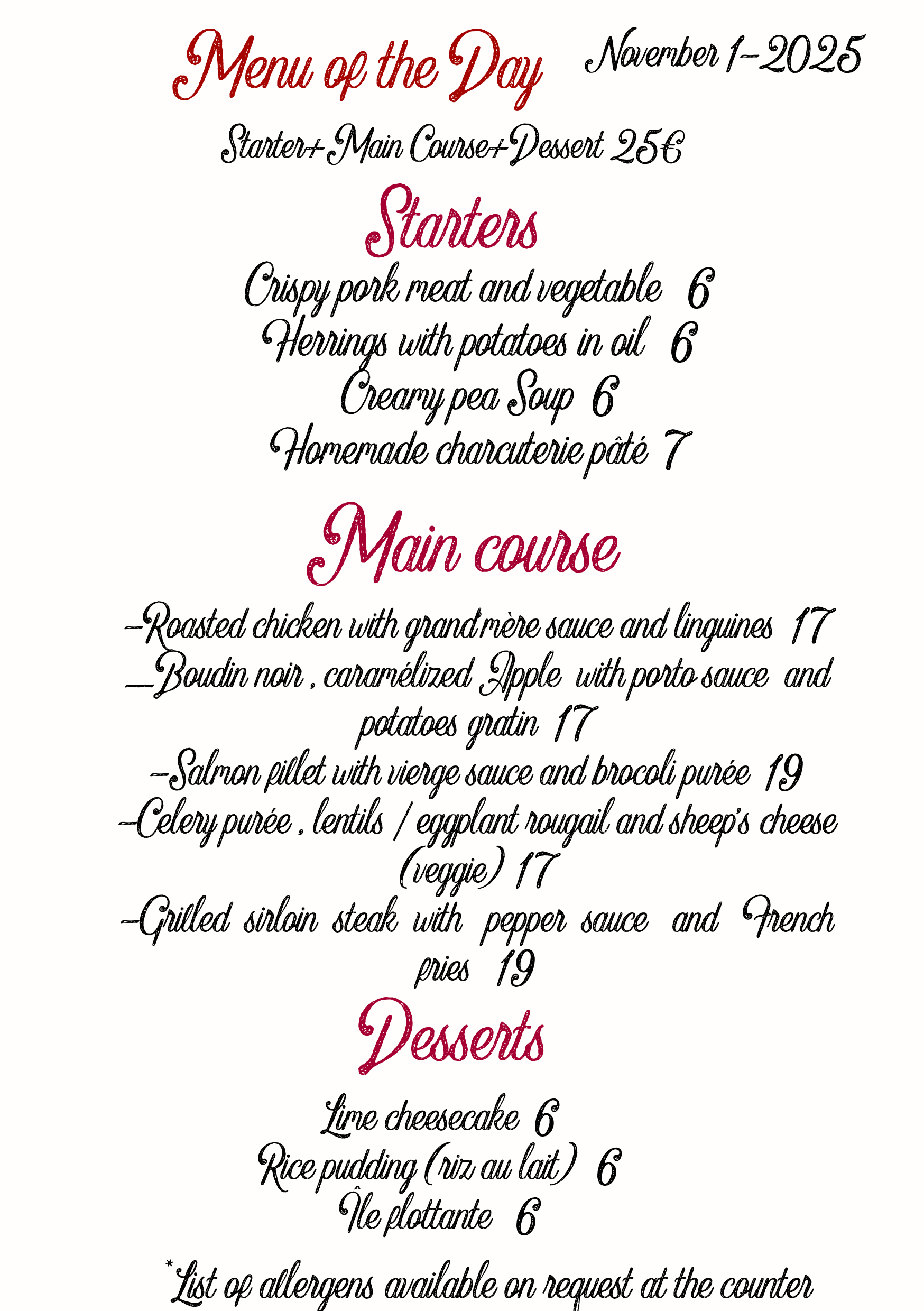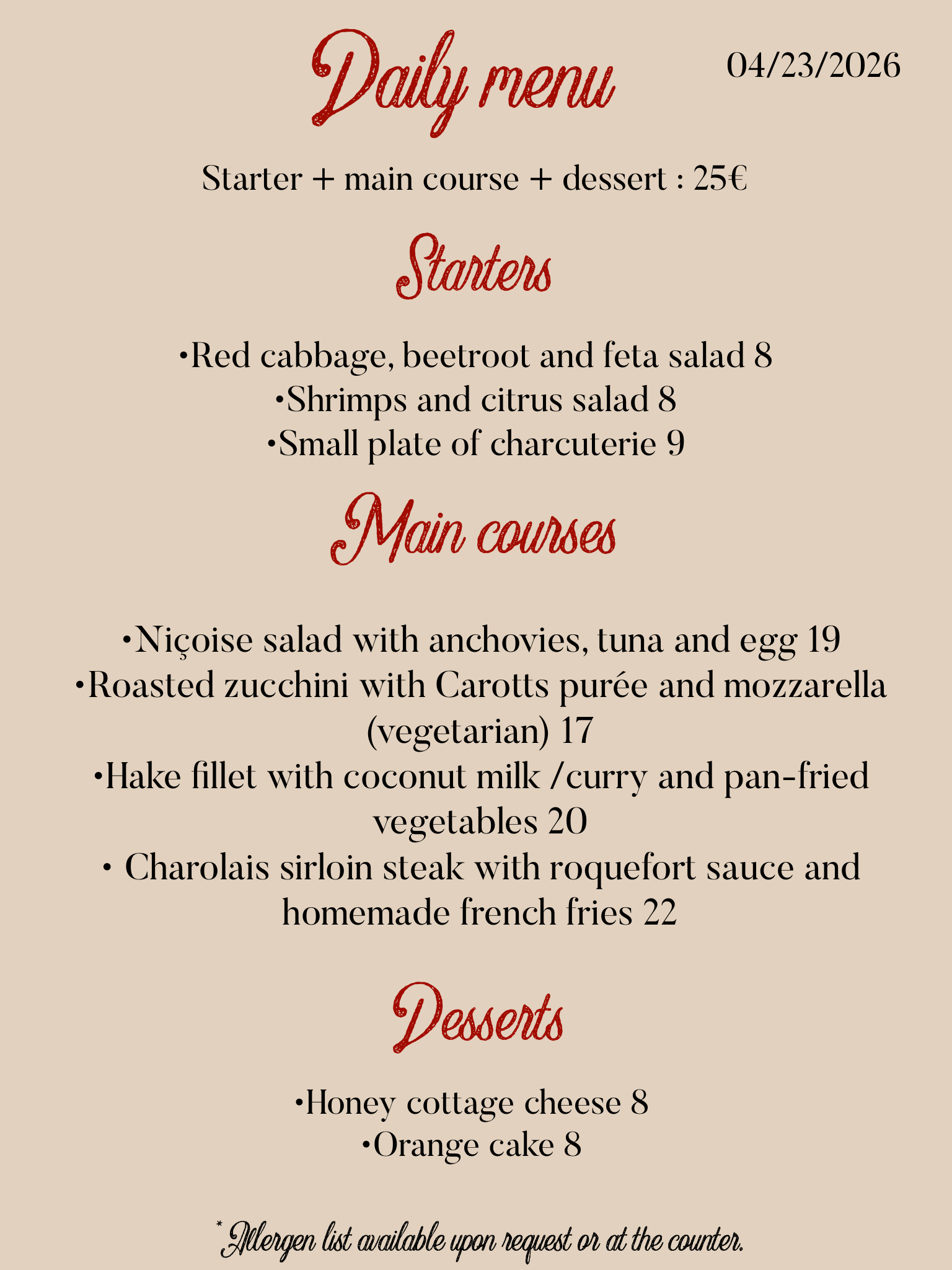Entrée - Plat ou Plat - Dessert : 16.5 euros