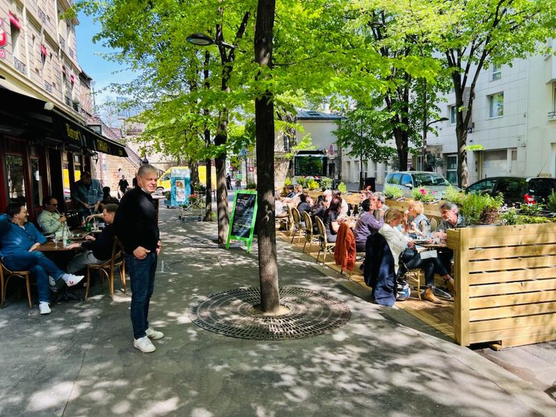 Une terrasse agréable sous les arbres centenaires vous fera profiter du soleil juste à l'entrée du cimetière de Montmartre où reposent des grands noms tels que Sacha Guitry, Louis Jouvet, Stendhal, Degas, Berlioz, François Truffaut, Dalida, France Gall, Michel Berger, etc.